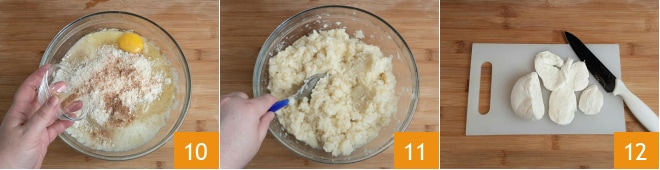 la nuez moscada 10 y mezclad bien todo con una cuchara 11. Cortad la mozzarella en rodajas finas y reservad 12.