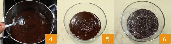 hasta que se derrita completamente 4, pasad la mezcla a un bol 5, cubrid con film 6 y dejad enfriar en la nevera.