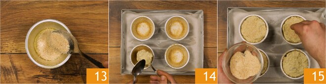 Cubridlos con pan rallado 13, luego llenadlos con la crema de alcachofas 14 y espolvoread la superficie con un poco de pan rallado 15.