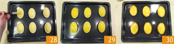 Mezclad en un pequeño bol la yema y la leche de arroz, trasladad los pasticciotti a una bandeja y pincelad cada pasticciotto 28. A este punto 29 hornead en un horno estático precalentado a 180° durante 30 minutos, en la rejilla central. Cuando estén dorados, vuestros pasticciotti están listos para ser sacados del horno 30. Servidlos tibios o fríos.