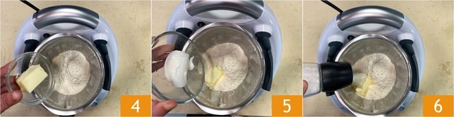 Agrega también la mantequilla 4, la manteca 5 y la sal 6.