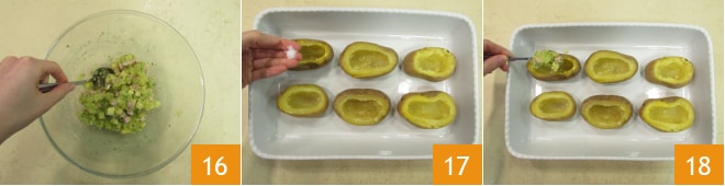 Mezclad bien 16 y antes de rellenar las patatas, salarlas por dentro 17. Luego, rellenadlas una a una 18.