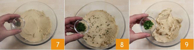 y tritúralo con una batidora hasta obtener una consistencia casi cremosa 4. Cuando las patatas estén listas (verifica su cocción haciendo la prueba del palillo: deben estar blandas) pélalas y pásalas por el pasapurés 5. Une el atún y mezcla muy bien los dos ingredientes, ayudándote con una espátula: debes obtener una mezcla compacta y homogénea 6.
