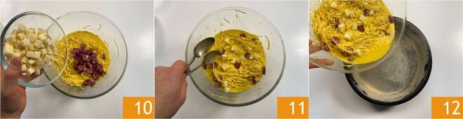 La pizza de tallarines es una receta de la tradición campana que se prepara sobre todo en el período de Pascua. Los ingredientes son similares a los del tortano y del casatiello... por lo que no faltarán huevos, salami napolitano y provolone. Aunque en realidad este plato nació como una receta de aprovechamiento, así que podéis añadir los embutidos y quesos que más os gusten o tengáis en casa. La pizza de tallarines no es más que una Tortilla de espaguetis, excelente también para degustar a temperatura ambiente y fácil de llevar para una excursión o el picnic del lunes de Pascua. Su característica principal consiste en utilizar los tallarines en crudo, sin hervirlos antes... gracias a su cocción rápida se cocinarán en el horno junto con el resto de los ingredientes.