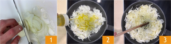 Para preparar los plin rellenos de ragú napolitano, empieza por el ragú: pela las cebollas y córtalas finamente 1. Coloca las cebollas en una cazuela, añade el aceite 2 y enciende el fuego. Estofa las cebollas a fuego lento durante unos 20 minutos 3.