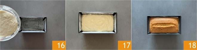 Verted la masa en un molde de plumcake grande de 18x10 cm, forrado con papel de horno 16. En este punto 17 hornead en horno estático precalentado a 170° durante 50 minutos. Haced siempre la prueba del palillo antes de sacar el dulce del horno. Dejadlo enfriar antes de desmoldarlo 18.