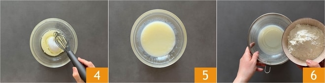 Mezclad con una varilla 4 hasta obtener una mezcla homogénea 5. Tamizad la harina dentro 6.
