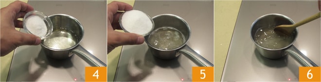 Mientras tanto, preparad la mezcla de vinagre de arroz. En un cazo verted el vinagre y la sal 4. Calentad a fuego medio-bajo hasta que la sal se haya disuelto, luego añadid el azúcar 5. Mezclad y apagad el fuego 6. Dejad enfriar.