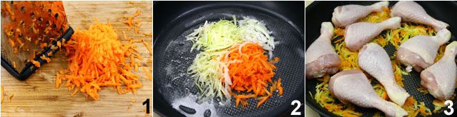 El pollo a los 4 sabores con pastel de zanahorias es un segundo plato realmente delicioso: el pollo se dora primero en las verduras en juliana y luego se rocía con cerveza rubia y se cocina en el horno.