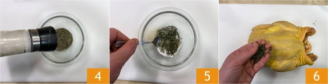 Agrega también la sal 4 y mezcla 5. Utiliza esta picada para sazonar el pollo tanto por fuera como por dentro 6.