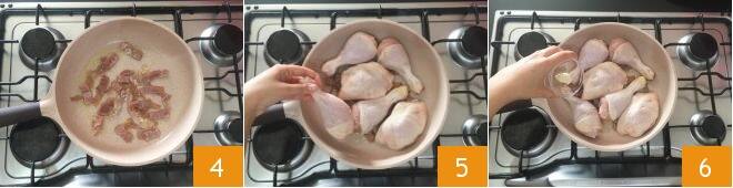 y deja que se dore durante 1 minuto 4. Luego, añade los muslos y contramuslos de pollo 5. Agrega el diente de ajo 6