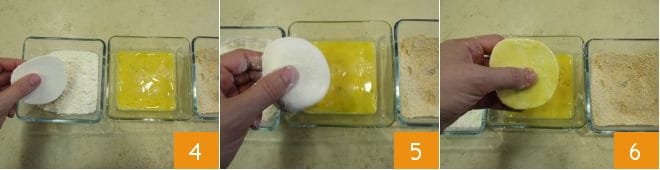 En este punto pasa el primosale primero por la harina 4 y luego por el huevo (5-6).