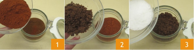 Para preparar el pulled pork, primero prepara el rub: toma un tarro grande y vierte dentro el pimentón dulce y ahumado 1, el azúcar moscovado 2 y la sal fina 3.