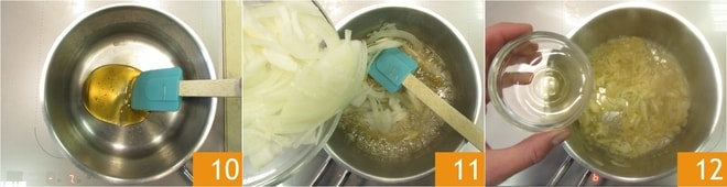 Para preparar la salsa barbacoa, primero limpiad y cortad finamente la cebolla. Verted la miel en un cazo y calentadla a fuego moderado 10, luego añadid la cebolla 11 y dejad que se ablande durante unos 5 minutos, asegurándoos de que no cambie de color. En este punto, añadid el vinagre de vino blanco 12 y la mostaza.
