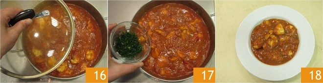 Ajusta de sal y pimienta, cubre con una tapa 16 y deja cocinar durante unos 8-10 minutos. Aromatiza con perejil finamente picado 17. Sirve el rape en guiso bien caliente con pan tostado 18.
