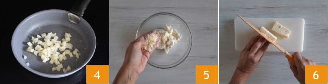 Deben quedar muy blandos 4. En un bol, verted la ricotta; añadid el Grana Padano y mezclad 5. Cortad el taleggio en trozos pequeños 6.