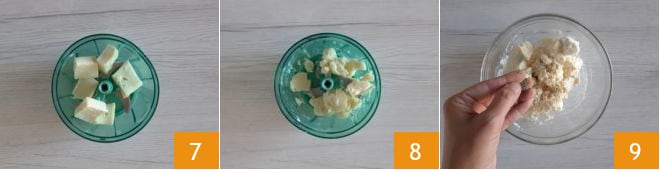 Ponedlo en un procesador 7 y trituradlo groseramente 8. Añadid el taleggio a la ricotta 9.