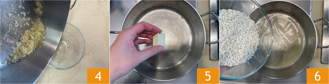 Reservad la cebolla 4. En la misma olla, derretid los otros 25 g de mantequilla 5. Una vez derretida, podéis añadir el arroz 6.