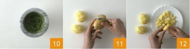y el pesto ya está listo 10. Pelad las patatas 11 y cortadlas en cubos 12.