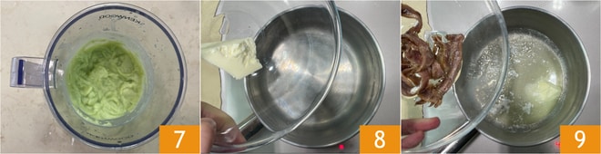 Deberás obtener una crema lisa y homogénea 7. Reserva y pasa a la salsa de bagna caoda: en una cacerola funde suavemente la mantequilla 8 junto con las anchoas 9.
