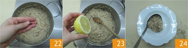 Añade la pimienta rosa 22 y también el jugo de medio limón 23. Mezcla todo bien, ajusta de sal si es necesario y emplata 24.