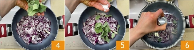 Añade las hojas de salvia 4, sala 5, echa pimienta y cocina con la tapa durante 15 minutos a fuego medio-bajo, removiendo de vez en cuando 6.