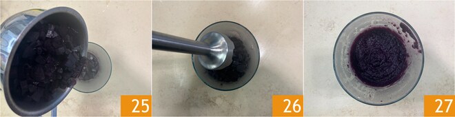 Transfiera todo a una batidora 25 y mezcle 26 hasta obtener una crema suave y homogénea 27.
