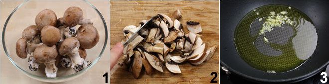 Para preparar el rollo a la cerveza con speck y champiñones, comienza preparando la crema de champiñones que servirá para rellenar el rollo de ternera. Limpia bien los champiñones 1 siguiendo nuestra Cómo limpiar los boletus, y luego córtalos en láminas 2. Pon 2 cucharadas de aceite de oliva virgen extra en una sartén junto con el diente de ajo machacado 3, añade los champiñones y cocínalos durante 5 minutos.