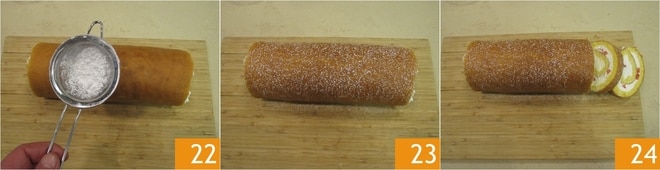 Espolvorea con azúcar glas 22, si fuera necesario recórtalo 23, luego córtalo en rodajas y sírvelo 24!