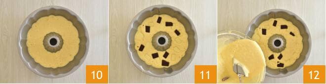 y verted la mitad de la masa dentro 10. Añadid 40 g de chocolate negro y 40 g de chocolate blanco en cubos 11. Cubrid con el resto de la masa 12
