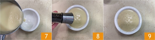 Cuando la salsa haya alcanzado la consistencia deseada, transfiérela a un bol resistente al calor para servirla 7. En este punto, puedes ajustar la sal, si el caldo no es ya salado, y añadir una generosa molienda de pimienta negra para realzar el sabor de la salsa 8. Mezcla de nuevo y tu salsa gravy está lista: caliente, aromática y envolvente 9.