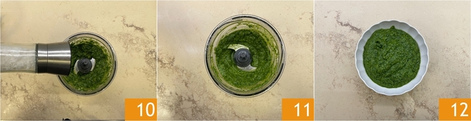 Prueba la salsa obtenida, ajusta de sal 10 y tritura una última vez hasta obtener la consistencia deseada 11. ¡Tu salsa verde sin huevo está lista para ser servida 12!
