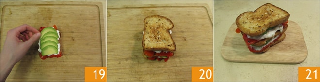 y aguacate 19. Cerrad con una última rebanada de pan 20. Vuestro sándwich tricolor sin gluten está listo para ser disfrutado 21.