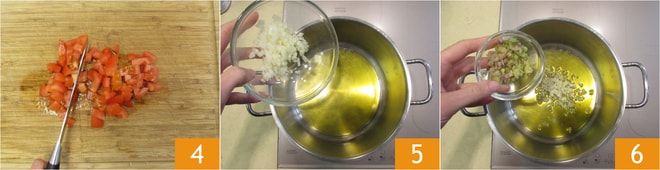 Lavad y cortad en cubos los tomates 4. En una cacerola verted el aceite de oliva, la cebolla, el lemongrass 3.