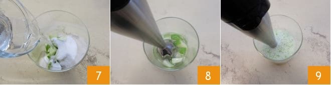 luego añadid el agua 7 y batid todo 8, hasta obtener una mezcla de consistencia cremosa 9.