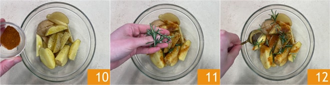 Añadid el pimentón 10, el romero 11 y mezclad bien 12.