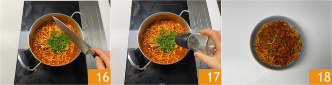 Unid el perejil picado 16 y la pimienta negra 17. Mezclad bien y servid 18.