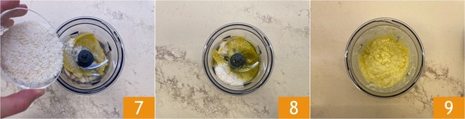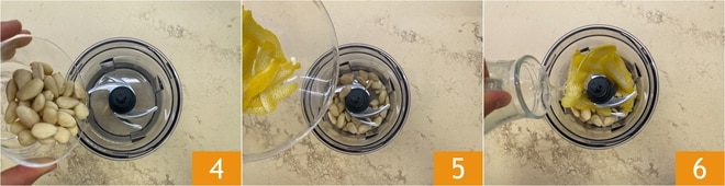 En un procesador de alimentos mezclad las almendras peladas 4, la ralladura del limón 5 y el jugo 6.