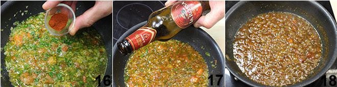 el pimentón 16, sal, pimienta y por último la cerveza 17. Cocina durante 10 minutos hasta que todos los ingredientes se ablanden 18.
