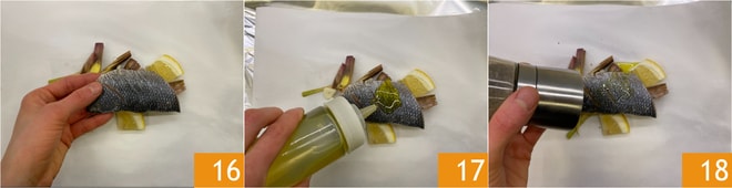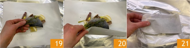 Completa con algunas ramitas de tomillo limón 19. Cierra el papel de horno en forma de paquete 20 21.