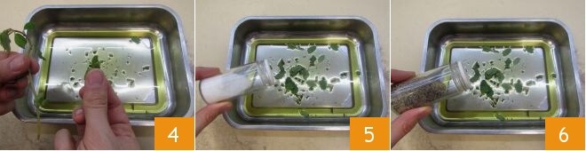 añadid las hojas de tomillo y mejorana 4 y ajustad de sal 5 y pimienta 6.