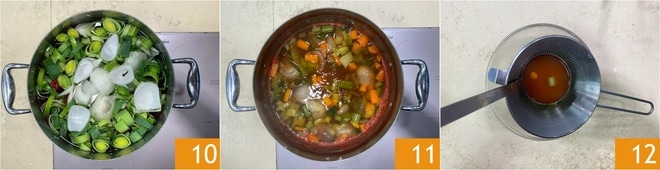 Coced a fuego medio durante unos 40 minutos 10. Pasado este tiempo 11 filtrad el caldo 12.