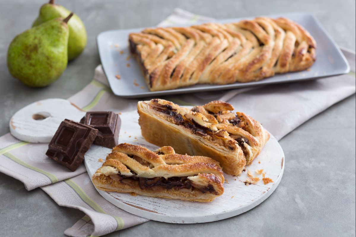 Si vais de prisa como Bolt y no tenéis tiempo para preparar la clásica base del Strudel de manzana, os damos una idea. Un strudel de pera y chocolate, súper rápido: una variante muy dulce del tradicional de manzana que apuesta por el ya reconocido y delicioso binomio de Tarta de peras y chocolate. La adición de especias como la canela y el jengibre realza aún más este postre, perfecto como colofón de una comida o para la merienda. Aunque se trate de un dulce muy rápido, nada se deja al azar: la decoración trenzada hará que vuestro strudel de pera y chocolate sea espectacular: una maravilla para la vista y el paladar.