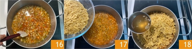 Removed y coced a fuego medio durante 25 minutos 16. Pasado este tiempo, añadid la pasta mixta 17 y cubrid a ras con el caldo de verduras restante 18.