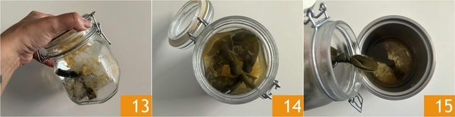 Ciérralo 13 y deja macerar a temperatura ambiente durante al menos un par de horas (o incluso toda la noche) 14. Después del tiempo de maceración, transfiere el dashi a un cazo 15.