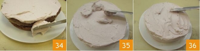 y los bordes, siempre ayudándote con una espátula 34. Con la crema que te queda, puedes esparcirla en la superficie para obtener un motivo ondulado más espectacular (35-36).
