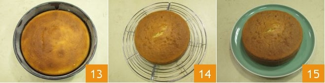 Coced en el horno estático precalentado a 180° en la rejilla más baja (no en contacto con la base) durante unos 35 minutos. Pasados los primeros 25 minutos, trasladad el molde a la rejilla central y continuad durante los 10 minutos restantes. Tan pronto como la tarta esté lista (comprobad con un palillo que esté cocida también internamente, de lo contrario, continuad la cocción), sacadla del horno y dejad que se enfríe un poco 13, luego sacadla del molde y colocadla sobre una rejilla para que se enfríe completamente 14. ¡Vuestra tarta de leche caliente está lista para ser degustada 15!