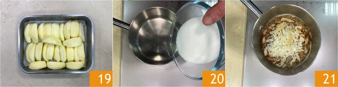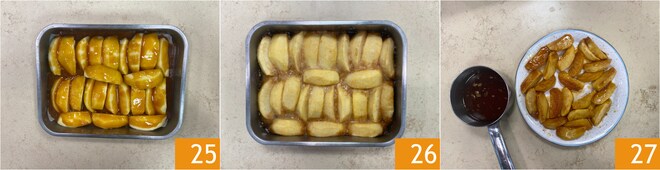 Pasen al horno estático precalentado a 180° durante 30-40 minutos 25. Sáquenlo del horno 26 y separen el caramelo de las manzanas 27.