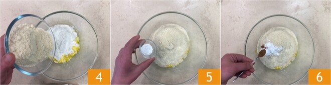 Ahora incorporen las harinas 4, la levadura 5 y la canela 6.