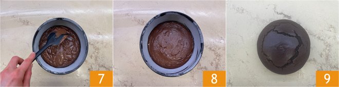 Mezcla y vierte la mezcla en un molde desmontable redondo de 17 cm, enmantequillado y enharinado, y nivela bien la superficie 7. Hornea en un horno estático precalentado a 160° durante unos 40 minutos 8. Verifica la cocción con un palillo, luego saca del horno y deja enfriar 9.